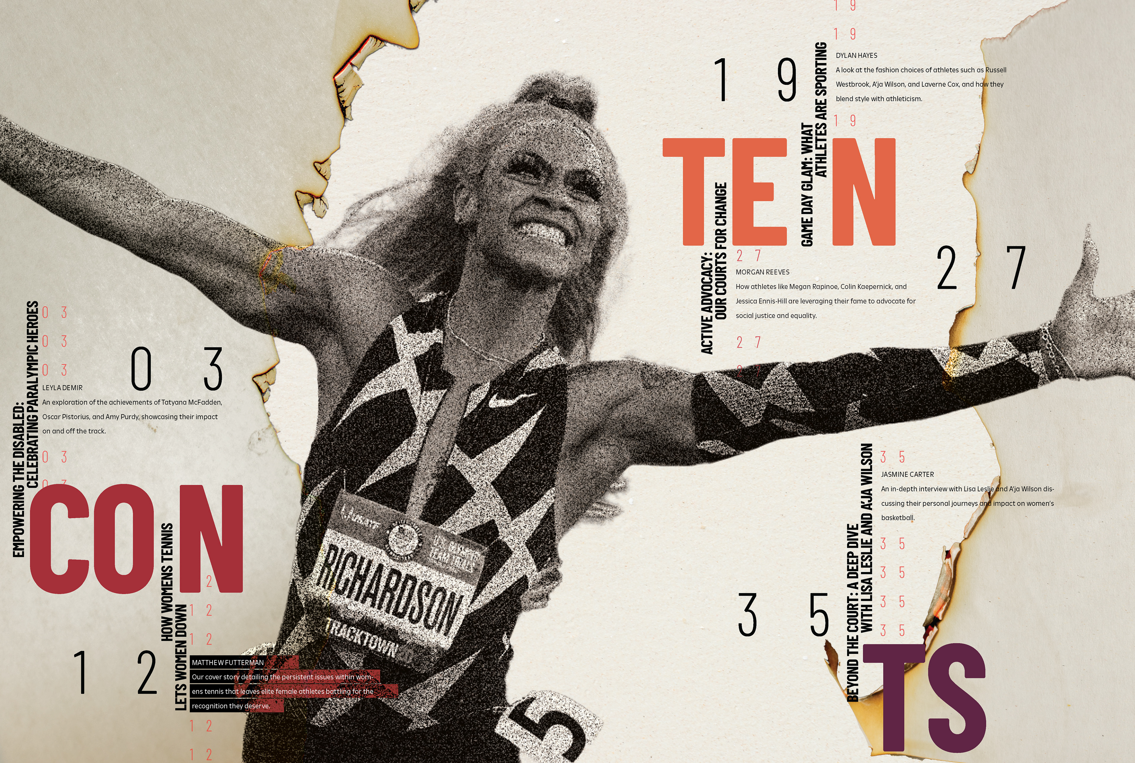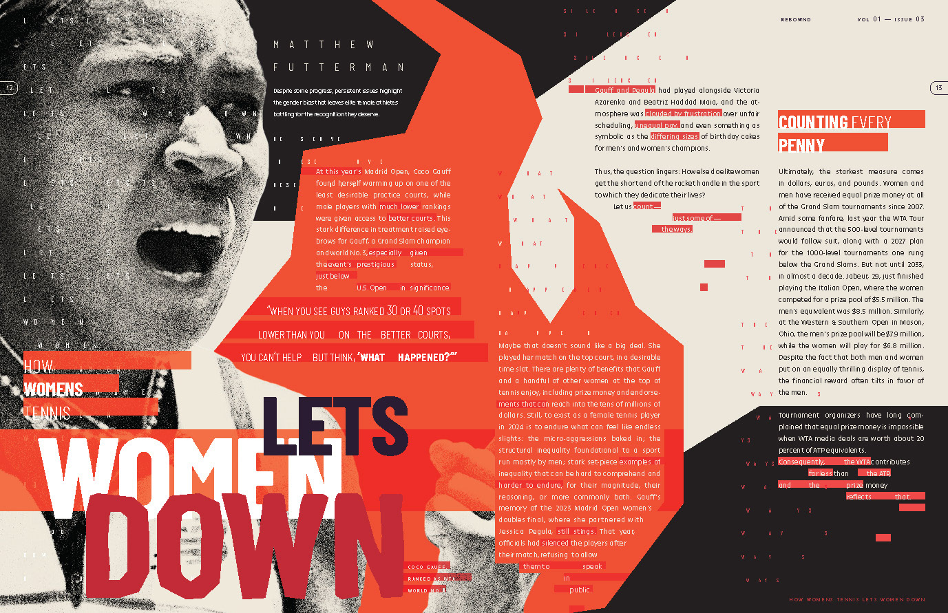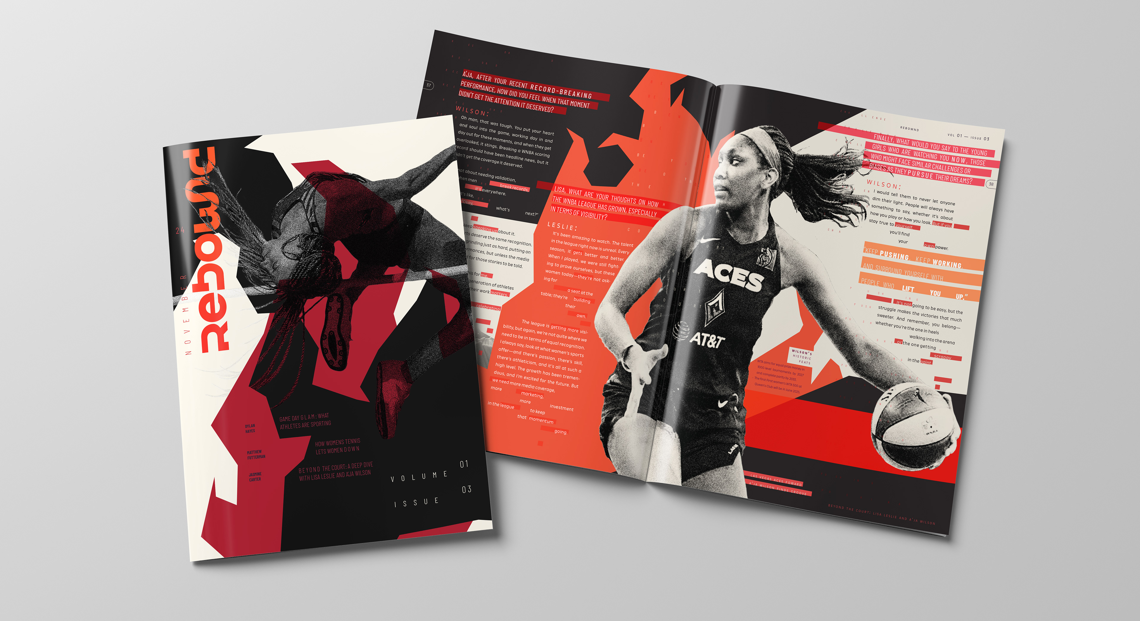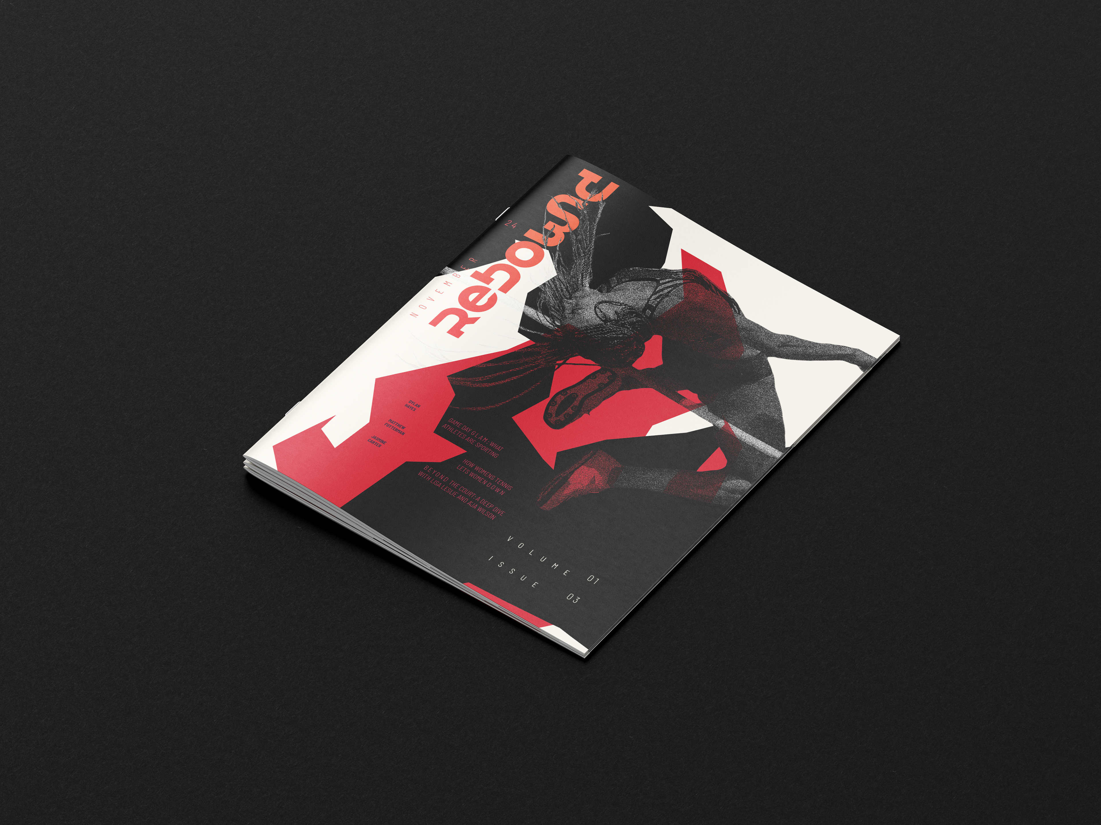 The final design includes a magazine with a fully-developed cover, wordmark and table of contents. All spreads align with REBOWND’s visual system, inspiring athletes to break past imposed limits.