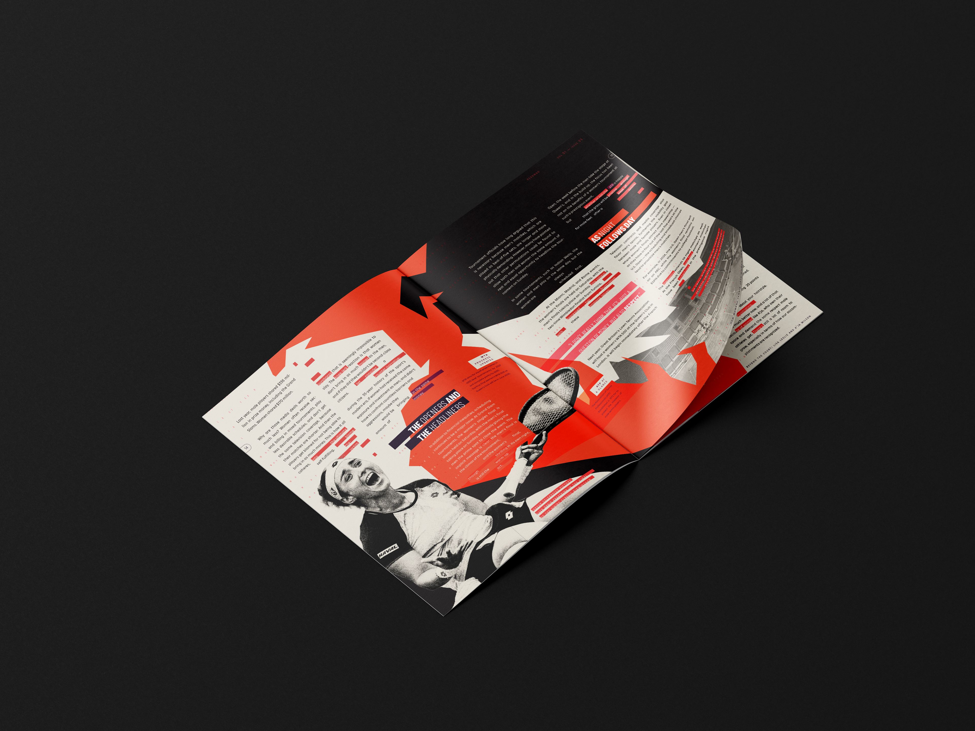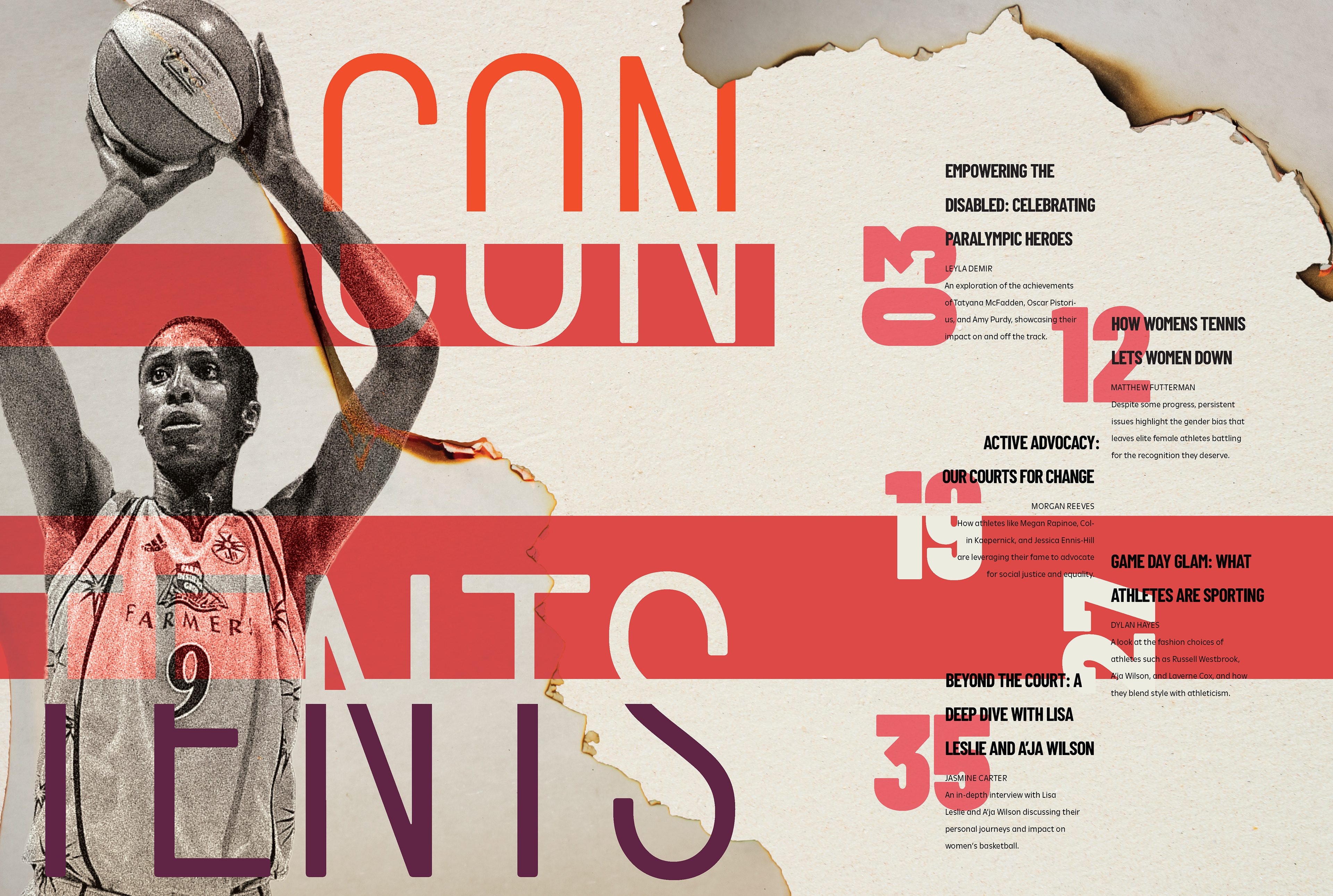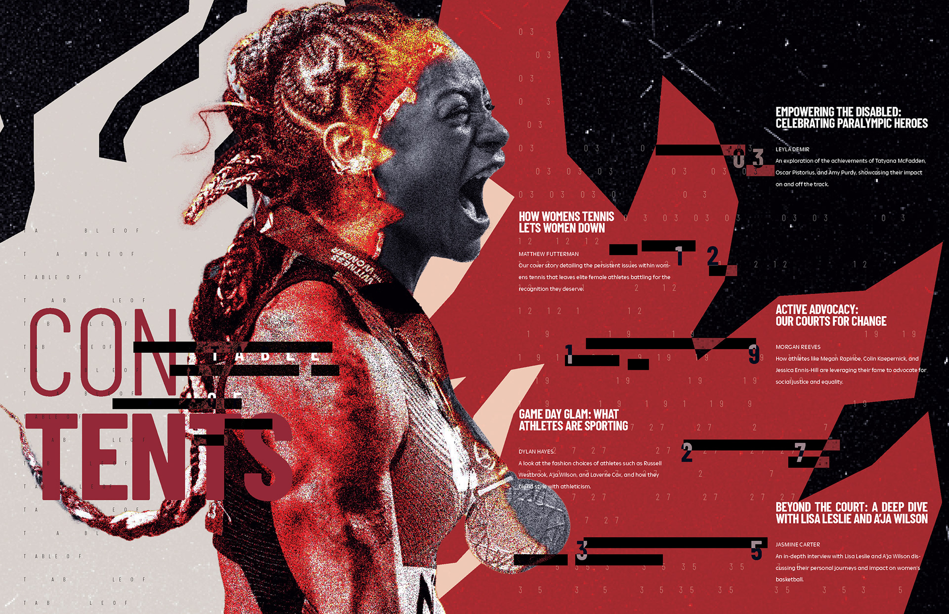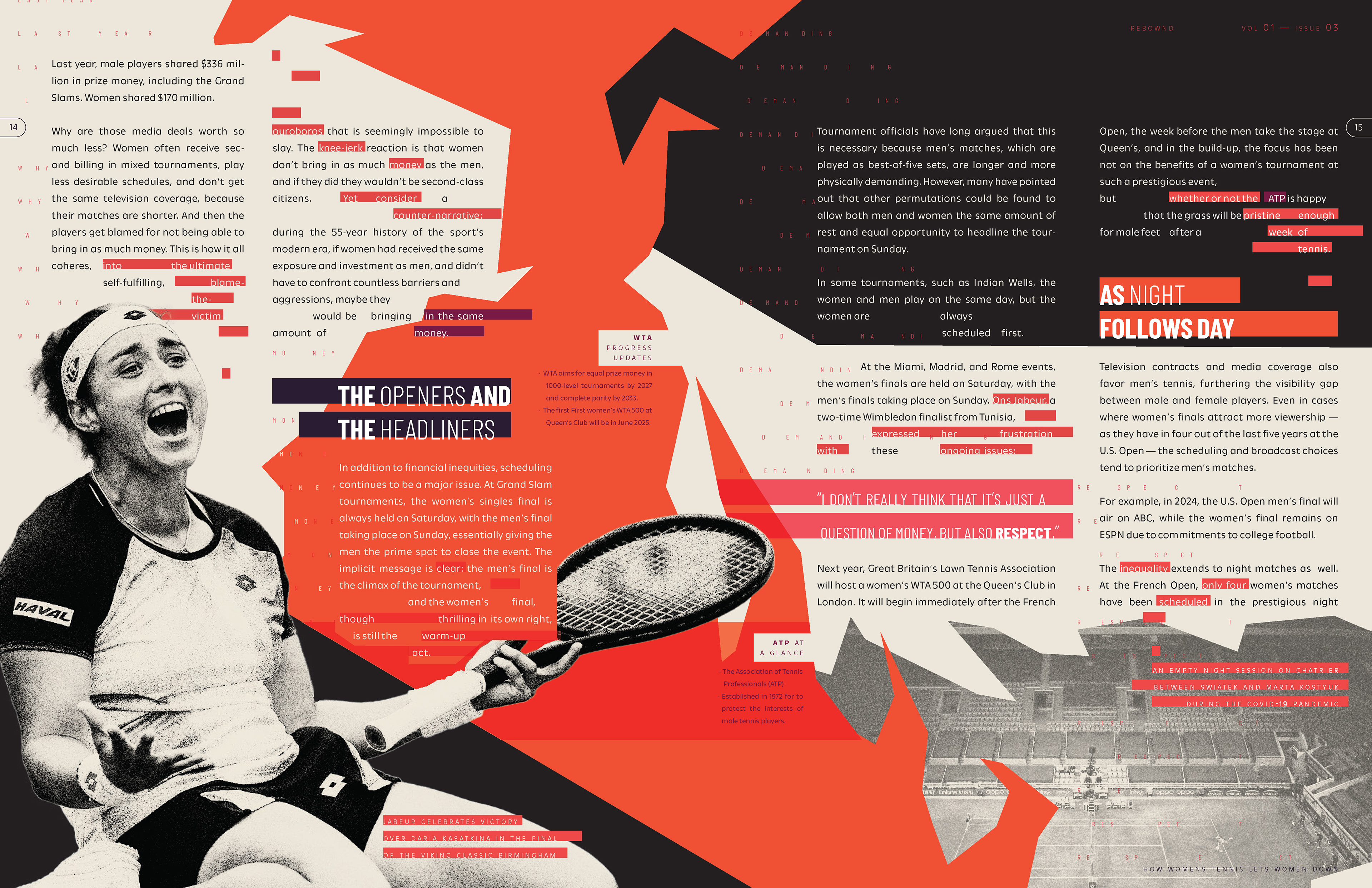 The final design includes a magazine with a fully-developed cover, wordmark and table of contents. All spreads align with REBOWND’s visual system, inspiring athletes to break past imposed limits.